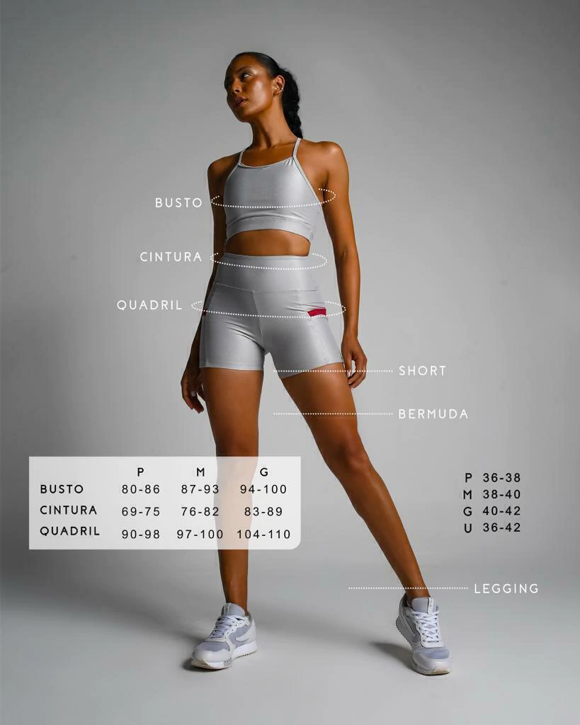 Confeccionado em tecido arrastão, sua composição de 89% Poliamida e 11% Elastano garante durabilidade e flexibilidade. Além disso, possui secagem rápida, ideal para quem busca praticidade.